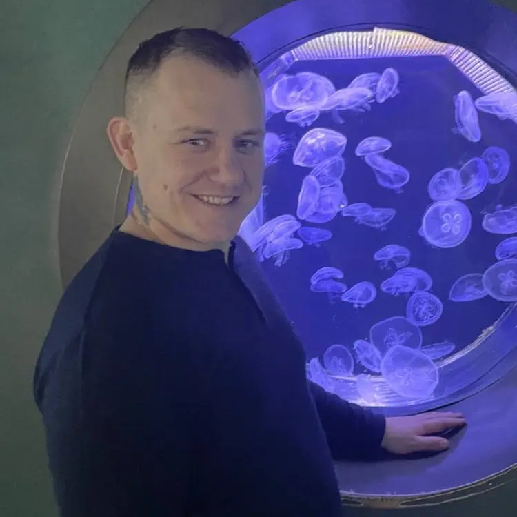 Блондин с голубыми глазами.